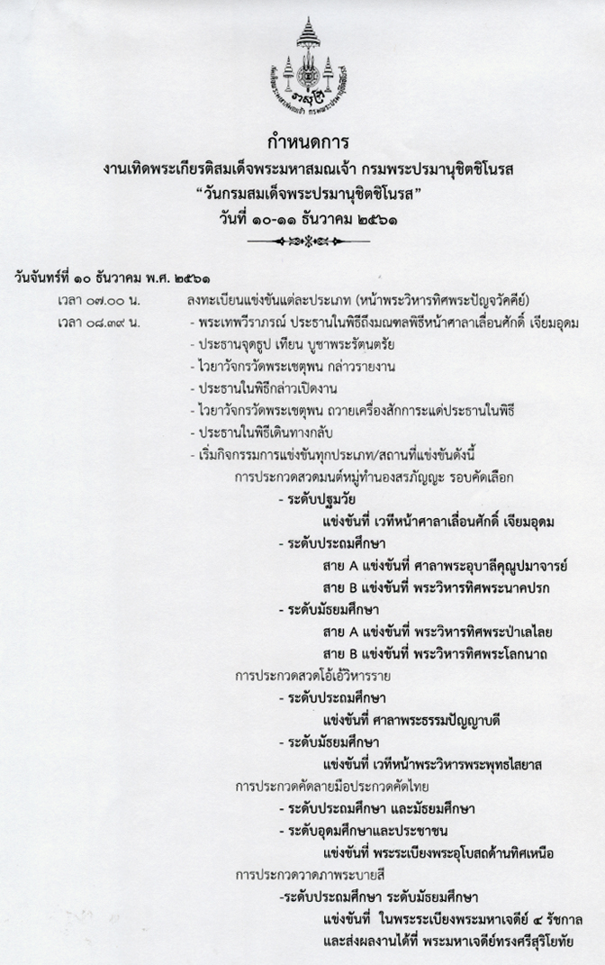 จากวันที่ ๙-๑๐-๑๑ ธันวาคม ๒๕๖๑ เป็นวันที่ ๑๐ - ๑๑ ธันวาคม ๒๕๖๑